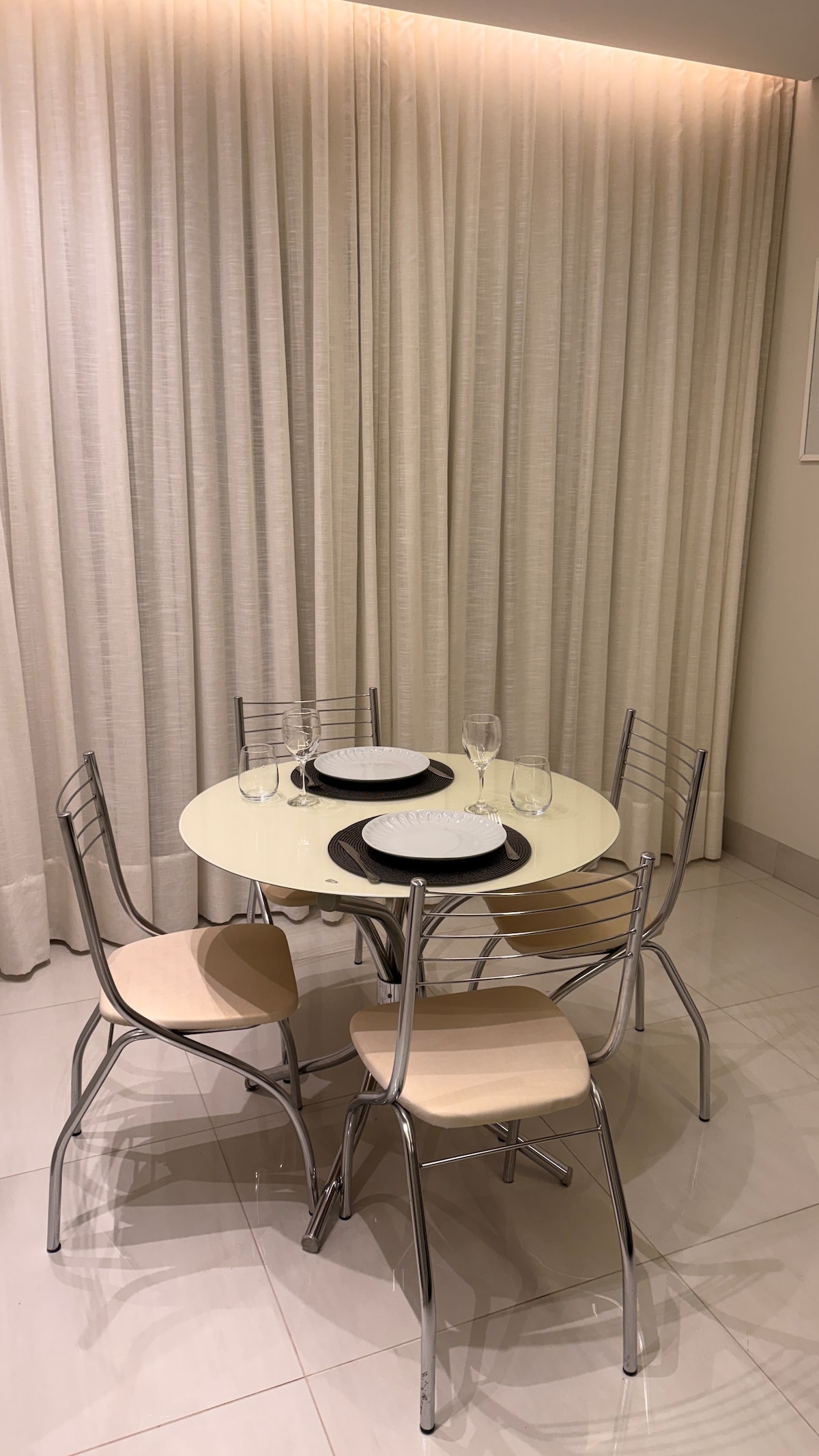 Apartamento aconchegante, bem iluminado e organizado. Conta com cozinha completa, fogão, Air Fryer, microondas, geladeira e utensílios para preparo de refeições. O quarto oferece cama confortável, TV, roupas de cama e toalhas. O banheiro é moderno, bem ventilado e possui ducha com ótima pressão. A varanda proporciona boa iluminação natural e ventilação. Conta com 2 vagas de garagem. Localizado em região estratégica, com fácil acesso a comércios, serviços e principais pontos da cidade.