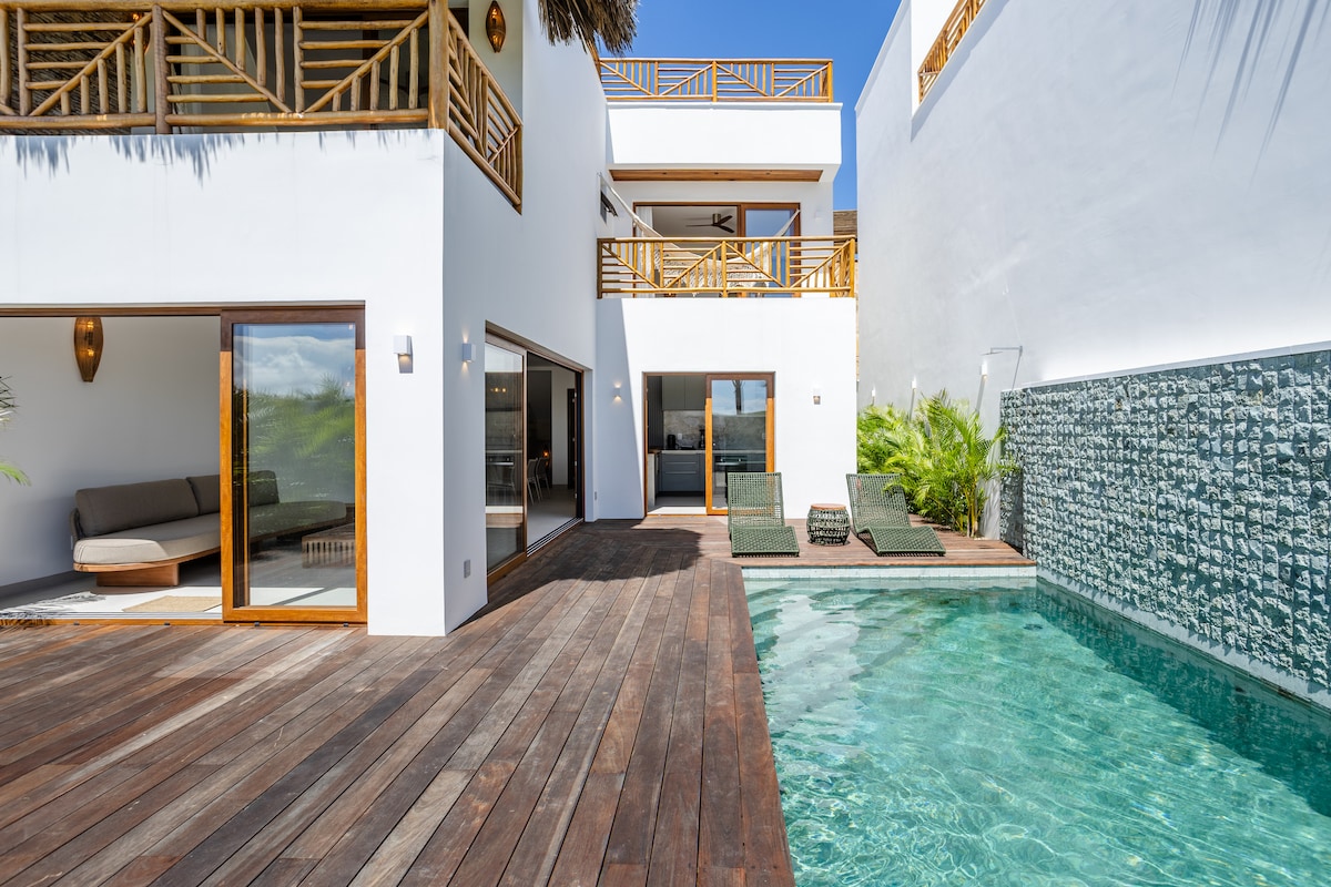 자연과 평온함, 지역 소재가 어우러진 작은 공간의 고급스러움은 바람이 어디에나 있는 놀라운 장소에 있습니다. 모래사장에 위치한 바다를 마주한 집으로, 프레아의 카이트 포인트에 위치하고 있으며, 카이트 랜치에서 300m, 발콘 레스토랑 옆, 포장 도로가 있는 메인 거리에서 300m 거리에 있습니다. 4 개의 스위트, 주방, 거실, 식당, 자쿠지와 바비큐 시설이 있는 옥상으로 구성되어 있습니다. 잔디밭과 카이트 팽창기도 갖추고 있습니다.