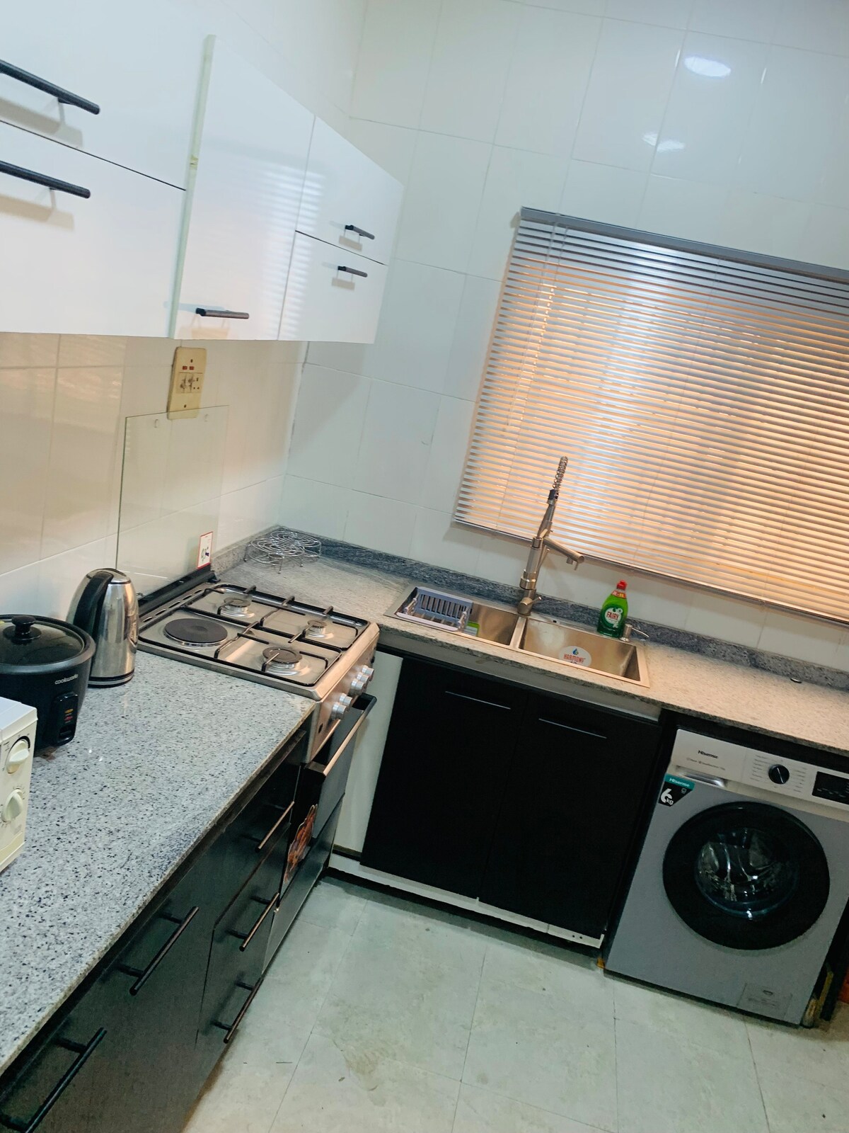 Family friendly spacious 4-bedroom contemporary house with lovely ambience in a serviced and secured estate with nearby attractions like supermarkets, bars, restaurants and cinema. The house is fully furnished and equipped to meet your need with; **24-hours power (with 10kva inverter as backup) **24/7 security **Beautiful and comfy living room and dining room. **2 Balcony on 2-floors **Equipped kitchen **Netflix and DSTV (Cable TV) **Home cleaning **Fast Internet (Fiber-optic internet)