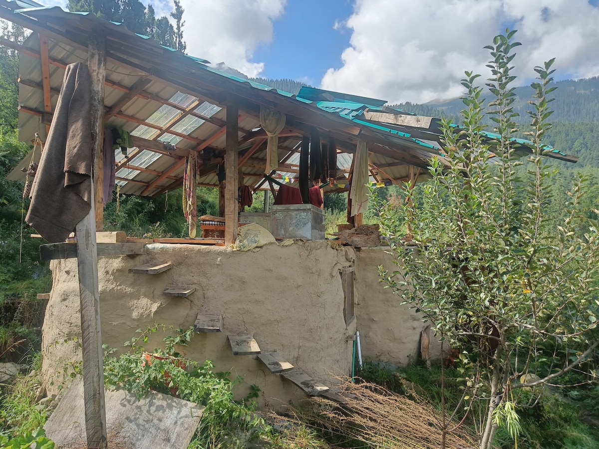 Hi! The cabin is a pvt. unit on our land, made naturally w exquisite sunset, snow clad peaks & Beas river views. Naggar is the widest part of the Kullu valley with breathtaking views & we are centrally located here. The Naggar Castle, Tripura Sundari & Krishna temple are nearby. Manali & Vashisht are 20 km. We also serve homely vegetarian meals & snacks at our home. We aren't a commercial hospitality unit, but an alt space for artists & anyone who is looking for a different travel experience.
