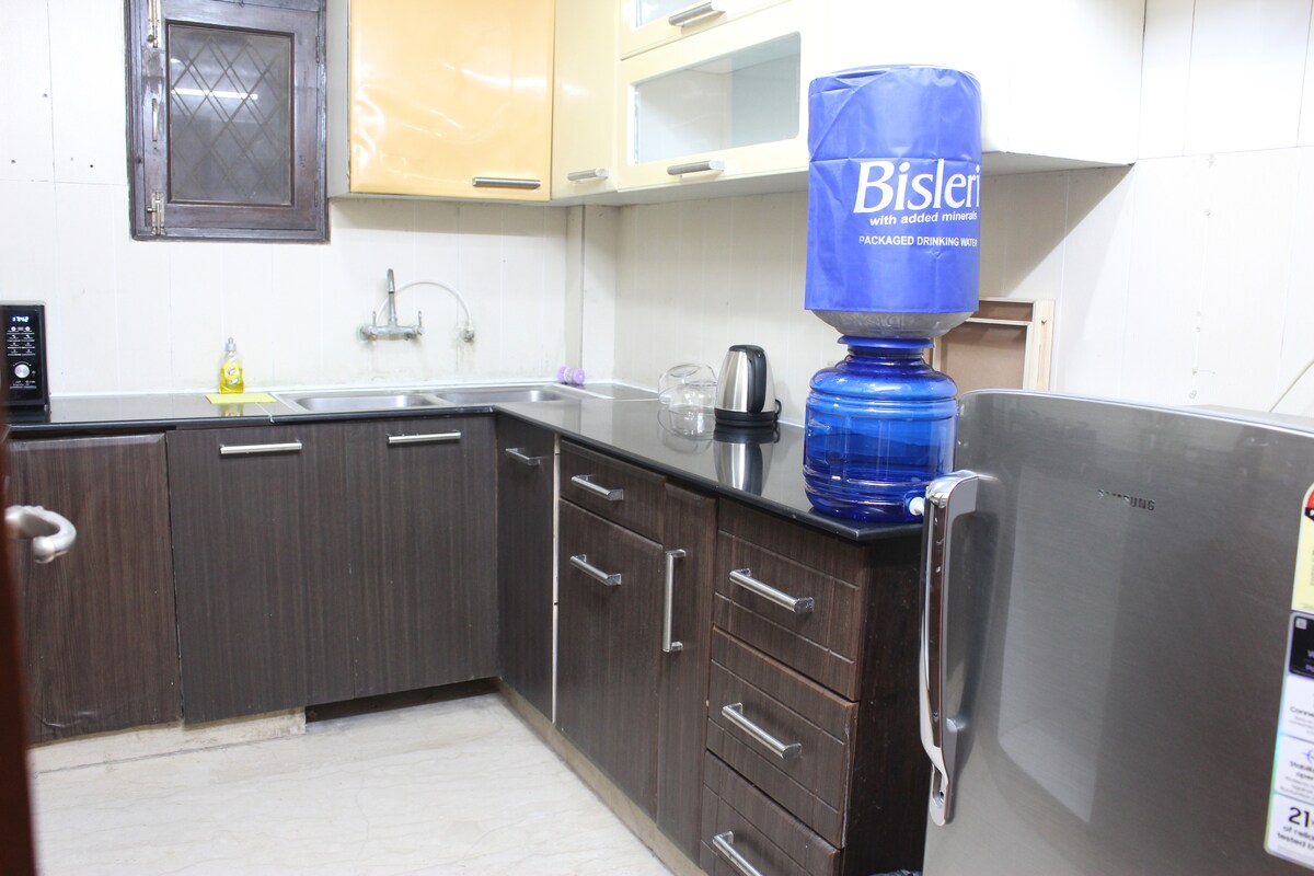 “H is for Home”에서는 델리 중심가에 위치한 세련된 인테리어와 풀 서비스 시설을 갖춘 멋진 햇살이 가득한 전용 3베드룸/3욕실 아파트를 제공합니다. 외부인 출입이 제한되고 안전한 건물에 위치해 있습니다. 맛있는 홈메이드 아침 식사, 차/커피가 포함됩니다. 델리/NCR 내에서 아그라/자이푸르로 이동할 때 공항 픽업/드롭, 자동차+운전기사 서비스를 제공합니다. 숙소는 3층에 위치해 있으며 현대적인 엘리베이터를 통해 접근할 수 있습니다. 모든 창문에는 그릴이 있으며 초고속 지오 파이버 와이파이를 제공합니다.