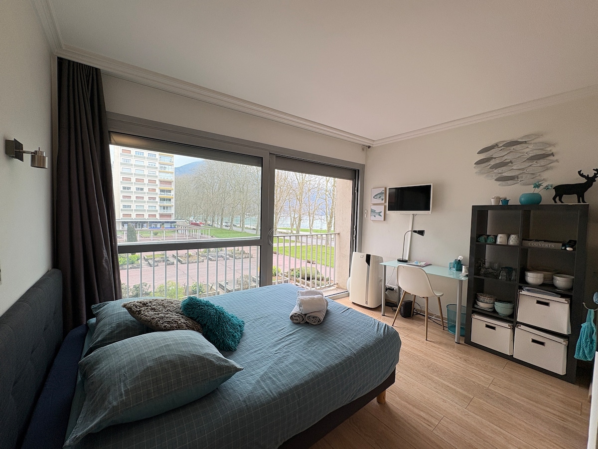 분류된 가구가 완비된 관광객 숙소 ⭐️⭐️⭐️⭐️ 안전한 건물의 엘리베이터가 있는 1층의 조용한 지역에 호수에 가까운 '보헤미안'에 짐을 두세요. 완전히 새로운 숙소로 편안한 숙박을 위해 편의시설과 호수 전망을 즐길 수 있습니다. 안시 구시가지와 가까운 탁월한 위치에 있어 이상적인 pied à terre입니다! 기차역에서 도보(15분), 고속도로에서 자동차(10분)로 빠르게 이동할 수 있습니다. The +: 전용 차고 🚘
