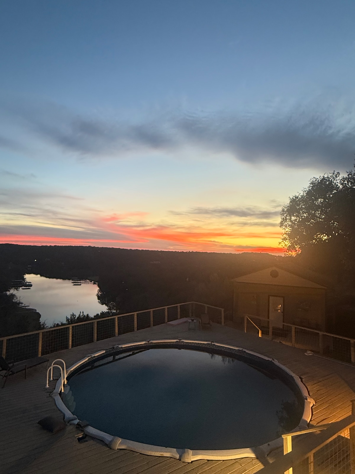 수영장과 선착장이 있는 호숫가 일몰 전망!