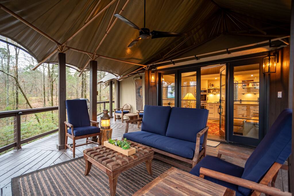 이 5성급 아프리카 텐트는 아칸소주 핫스프링스에 있습니다. 7인용 온수 욕조에서 휴식을 취하거나 데크에서 난방이 되는 야외 샤워실을 이용해보세요. 텐트 안에는 침대에서 나만의 TV 시청을 즐길 수 있습니다. 제빙기가 있는 스테인리스 냉장고. 벽 오븐과 전자레인지 서랍을 즐겨보세요. 야외 그릴에는 요리를 위한 사이드 버너가 있습니다. 최고의 요리. 접시 네트워크가 있는 모든 TV. 무료 와이파이. 욕실에 깊은 몸을 담그세요. 핸드 분무기가 있는 욕조와 난방 비데 화장실. 핫스프링스의 둥지를 경험해보세요.