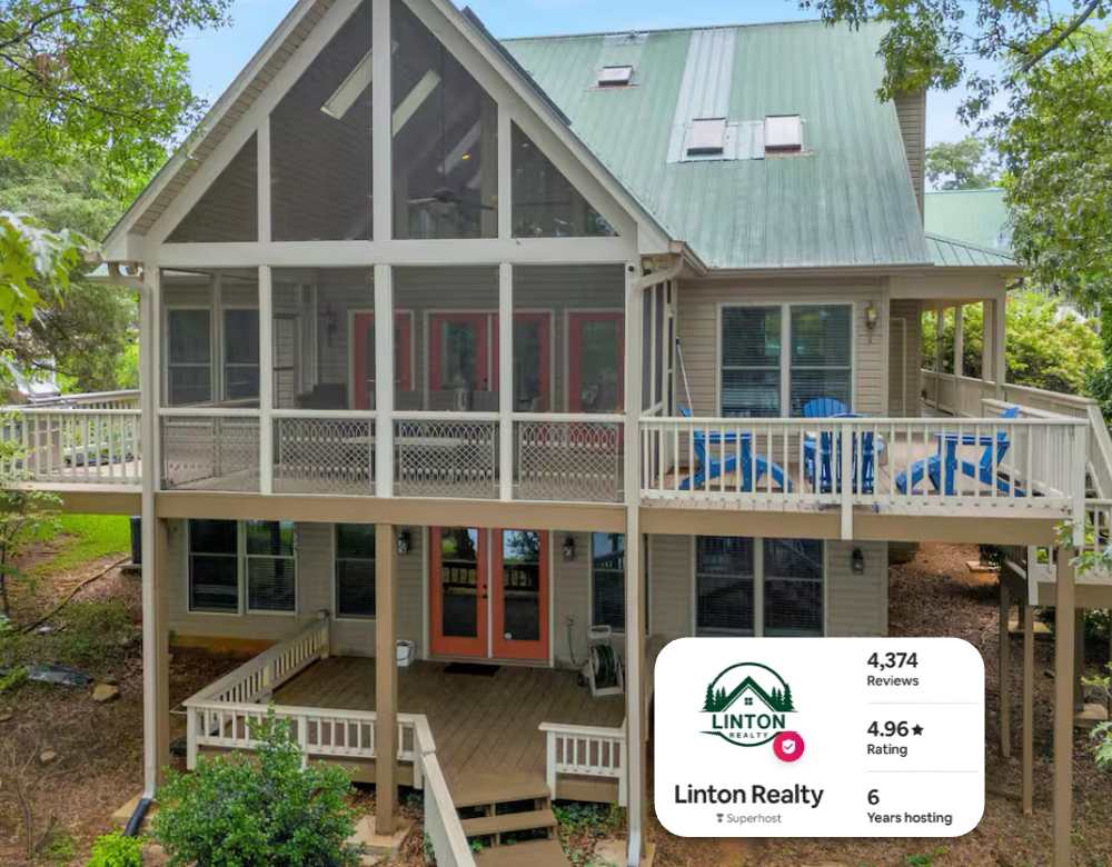 하트웰 호수에 위치한 전용 도로에 있는 넓은 2층 게스트하우스입니다. 7마일 전망을 자랑하는 더블 데크 도크를 이용해 하루 종일 낚시, 수영 또는 휴식을 취하세요. 중앙 난방 및 에어컨이 설치된 게스트하우스로 시설이 완비되어 있으며 시설이 완비된 주방, 와이파이, 스트리밍 평면 스크린 TV 3개, 욕조 2개, 세탁기/건조기 콤보, 넓은 데크가 있습니다. 소유자는 숙소에 거주하고 있지만 다른 거주지에 있습니다. 야외 카메라는 주차 공간이 내려다보입니다. 예약된 게스트만 숙소를 이용할 수 있습니다.