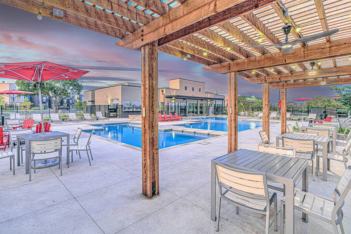 Free: Parking Free: Fast Wifi Free: Netflix Free: Coffee/Tea Bar Free: Pool & Gym Access Relax in the amazing pool with amazing amenities in the pool house! This luxe 2-bedroom retreat is just minutes from Baylor Scott & White Hospital, restaurants and shopping. Fast Wi-Fi & dedicated workspace Fully stocked kitchen Golf Simulator Gym Cornhole & Volleyball Office Space Free parking & easy self-check-in Book now for comfort, convenience and resort-style fun!