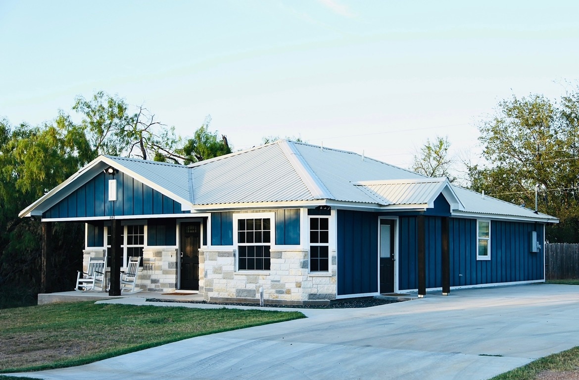 The Brady Villa at D6 Retreat sleeps 4 and offers guests a rejuvenating escape. Surrounded by natural splendor, the cabin provides direct access to hiking trails, butterfly gardens, wet-weather creek, & amazing sunsets. Guests can also enjoy the retreat's infinity pool, gift market, cafe, yoga studio for classes & community fire pit where fellow travelers gather. This sacred space invites visitors to craft their own transformative getaway in the heart of the serene Texas Hill Country.