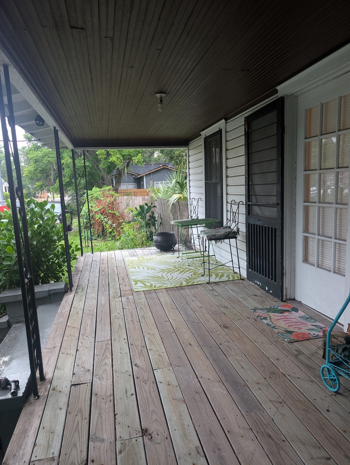 NO PET OR CLEANING FEES. The Daugherty House, a refurbished, downtown Lakeland, 1918 historic, 3 bed, 2 bath bungalow, between Lake Mirror and Lake Morton, features a 1907 upright piano, beautiful bedrooms with new mattresses and box springs, a spacious rocking chair front porch, cozy Florida room with a fold out couch, a gas fireplace, and memorabilia from Lakeland's history. The home's filled with antiques and modern conveniences, and the kitchen has all your cooking needs. CLICK SHOW MORE.