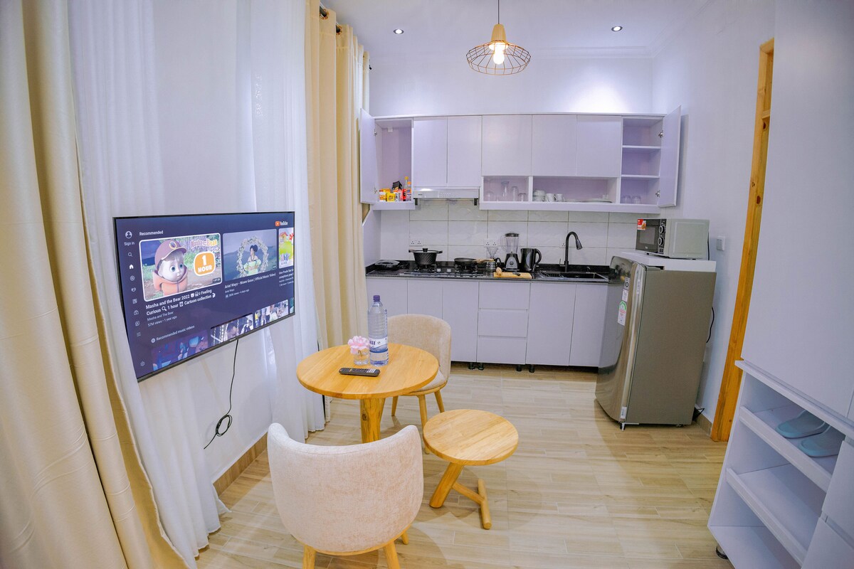 이 아파트는 무산제의 멋지고 안전하며 조용한 동네에 위치하고 있으며 키갈리-루바부 메인 도로와 평행하게 도심에서 도보로 15분 거리에 있습니다. 이 아파트는 두 유닛의 프라이버시를 보장하기 위해 울타리가 잘 쳐진 본관과 게이트와 주차장을 공유합니다. - 3m x 6m(9.85피트 x 19.70피트)의 개방형 공간, 더블 침대(140cm x 190cm/55인치 x 75인치) 및 간이 주방 - 욕실 1개 - 현관 - 전용 건식 정원 - 주차장에 예약된 차량 공간 1개 - 무료 인터넷