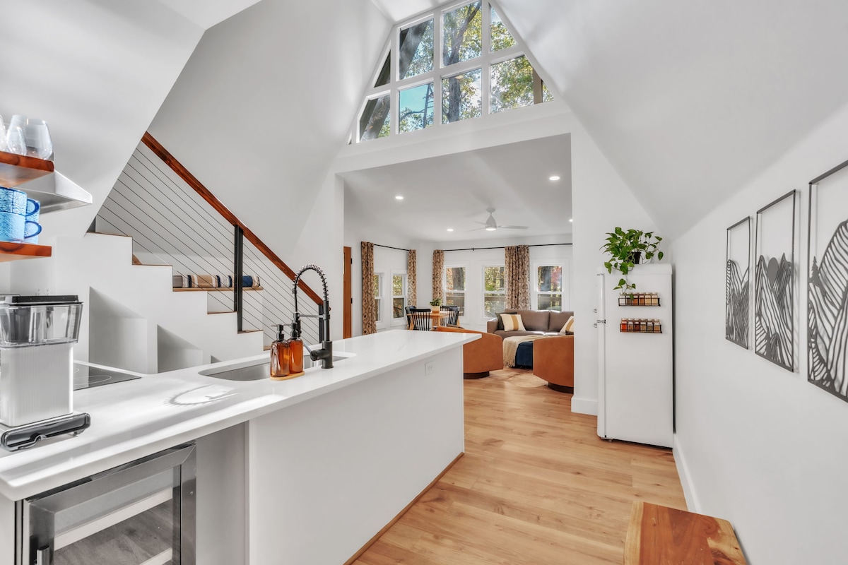 현대적이고 소박한 A자형 통나무집에서 산악 전망을 감상하며 일어나보세요. 커플, 가족 또는 두 커플을 위한 평화로운 휴양지입니다. 그림 같은 창문 전망을 즐기며 식탁에 둘러앉거나, 햇살이 내리쬐는 나무 위 데크에서 휴식을 취하거나, 블루 리지 산맥을 둘러본 후에는 나무를 태우는 난로 옆에서 휴식을 취해보세요. 산업적 소박함을 느낄 수 있도록 저희가 개조한 트리 하우스는 헨더슨빌, 플랫 록, 듀퐁 주립공원, 브레바드, 애슈빌, 블루 리지 파크웨이 근처의 중심부에 위치하고 있습니다. 빠른 스타링크 와이파이.