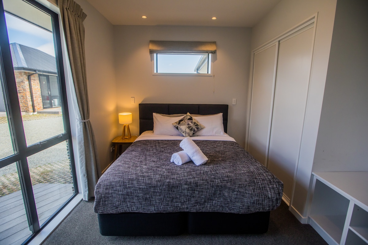 This Scandinavian inspired 2 bedroom apartment is beautifully setup for a small group or family. The well-equipped kitchen (even a Nespresso!) is open to the dining/living area, and this area then opens out through sliding doors onto a large deck with breath-taking views. The heatpump keeps it toasty warm in winter and cool in summer (log burner is not in use).The master queen bedroom enjoys stunning views to the lake and mountains.