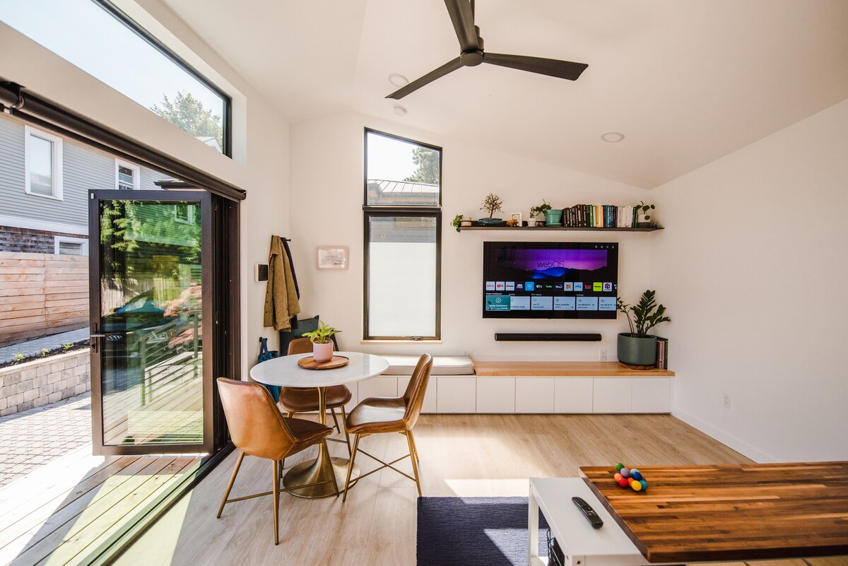 시애틀 중심지와 가까운 평화로운 가로수길에 위치한 세련되고 현대적인 게스트하우스를 둘러보세요! 이 독특한 숙소는 시애틀 숙소에서 보기 드문 에어컨이 자랑이며, 원격 근무에 이상적인 프리미엄 워크스테이션과 편리한 L2 EV 충전기가 구비되어 있습니다. 저희 게스트하우스에서는 대중교통을 쉽게 이용할 수 있으며 그린 레이크의 식사, 엔터테인먼트, 나이트라이프까지 도보로 가까운 거리에 있습니다. 다양성을 축하하고 다양한 배경을 가진 게스트를 환영합니다.
