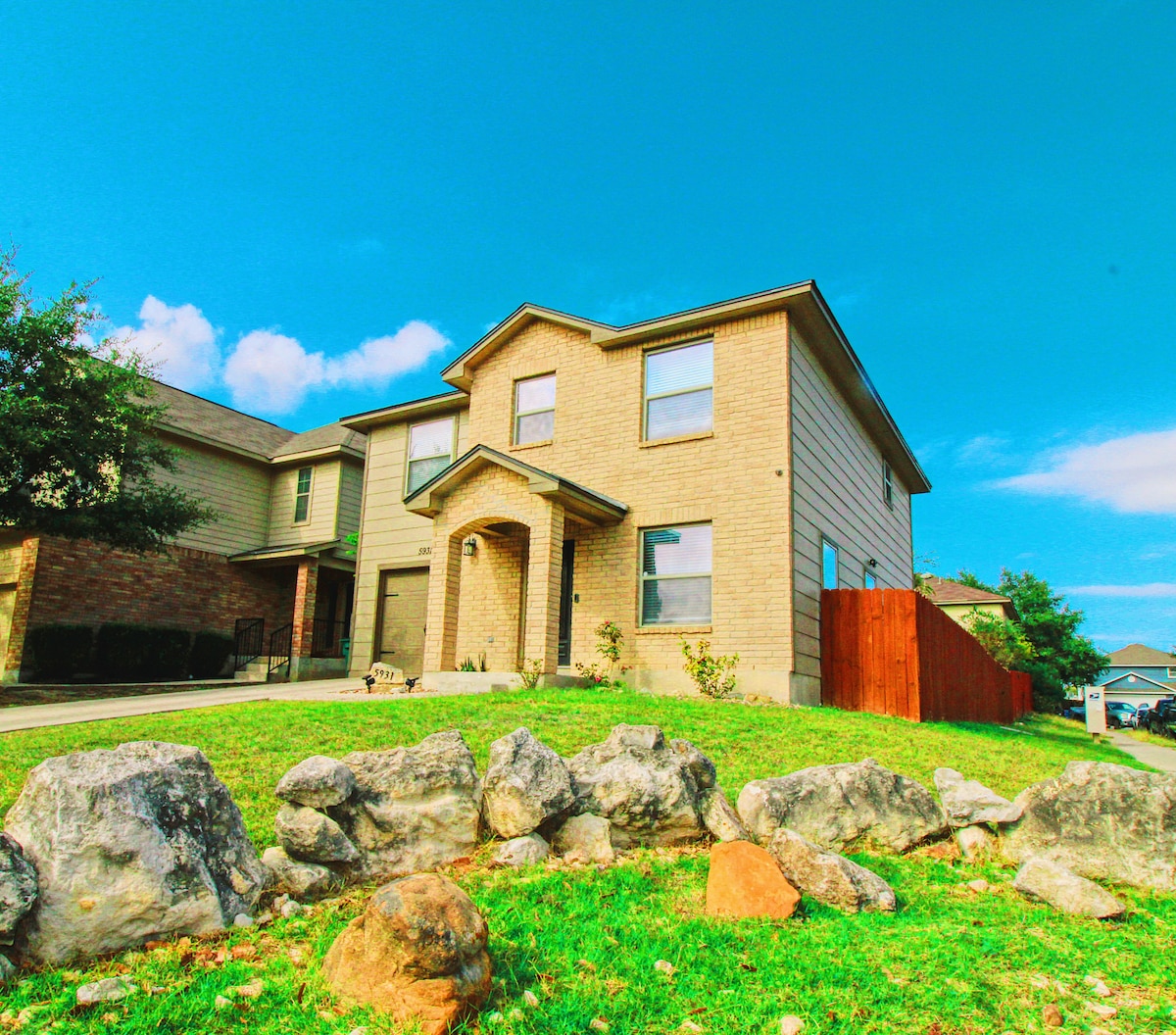 BMT 졸업식이나 가족과 함께 씨월드 여행을 즐기기에 완벽한 위치에 있는 아름답게 리모델링된 숙소입니다. 시설이 완비된 주방, 가족을 위한 다양한 게임, 퍼골라 아래의 훌륭한 야외 화덕을 즐겨보세요. 침실 3개와 욕실 2개, 초고속 인터넷, 보안 카메라/경보기가 완비되어 있어 안심하고 머무실 수 있습니다. 현지 편의시설: 씨월드 - 10분 래클랜드 - 14분 다운타운 리버워크 - 20분 피에스타 텍사스 - 22분 * 자동 도어 키패드로 게스트가 쉽게 출입할 수 있습니다.