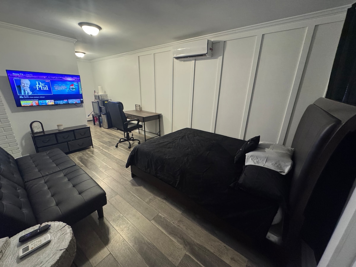 럭셔리한 스튜디오 아파트에 머무는 동안 로맨틱하고 이국적인 집의 우아함을 경험해 보세요. 이 프라이빗하고 아늑한 아파트는 아름답게 꾸며져 있으며 짧은 숙박이나 일주일간의 장기 숙박에 안성맞춤입니다. 이 새로운 전용 스튜디오 아파트에는 편안한 퀸 사이즈 침대, 전용 욕실, 간이 주방, 전용 업무 공간이 마련되어 있습니다. UBS 아레나, JFK 공항, 뉴욕 타임스 스퀘어, 루스벨트 필드 몰에서 몇 분 이내 거리에 있습니다. 수많은 바/레스토랑.