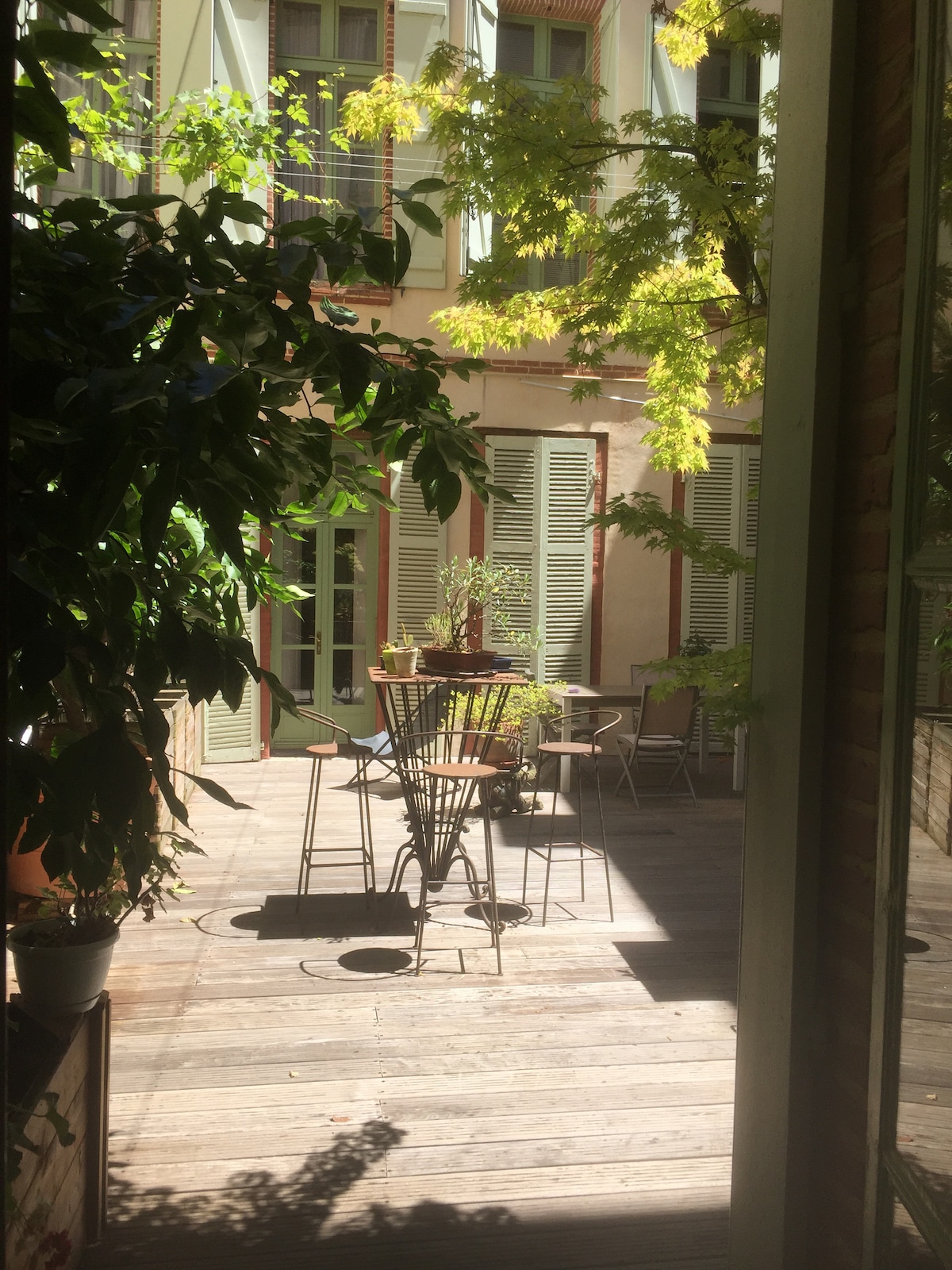 Chambre climatisée totalement indépendante avec accès indépendant, dispose d'une grande salle de bain et d'une belle entrée avec dressing. Elle ouvre sur une cour intérieure privative très calme au premier étage d'un ancien hôtel particulier en plein centre historique de Montauban. Un lit confortable vous accueille le soir. Vous disposez d'un réfrigérateur et d'un four micro-ondes pour conserver et réchauffer des plats , machine Nespresso et bouilloire Je dispose d'un local vélo sécurisé .