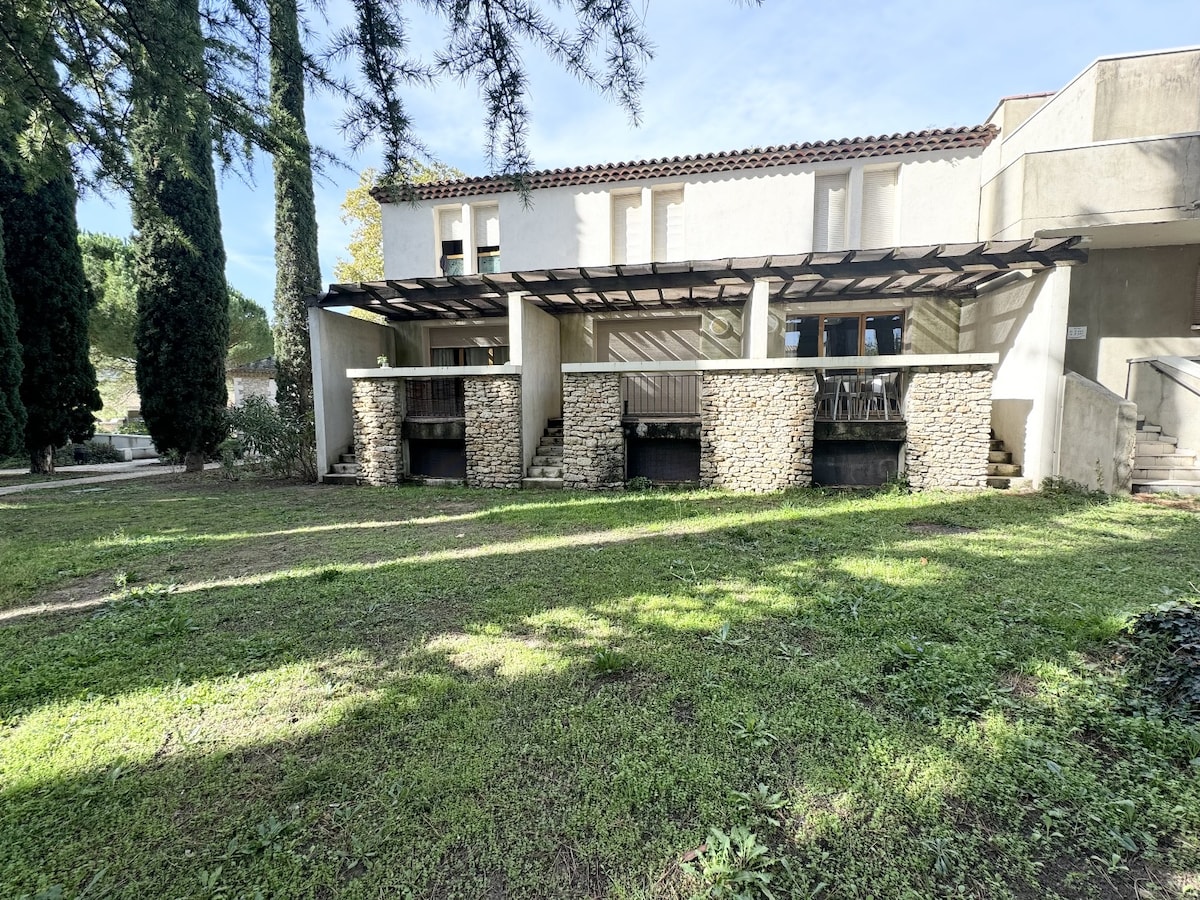 현대적인 스타일의 아파트(플랑카, 이탈리안 샤워, 킹사이즈 침대, 식기세척기, 침구 및 수건 제공)를 이용하실 수 있습니다. 전용 테라스와 자쿠지를 갖춘 완전한 독립적인 공간. 공원의 멋진 수영장도 이용하실 수 있습니다. 이 쾌적한 자연 속 풍경은 엑상프로방스에서 16분, 바다에서 30km 거리에 있습니다. 근처에 상점, 스포츠 및 수영장 센터가 있습니다.