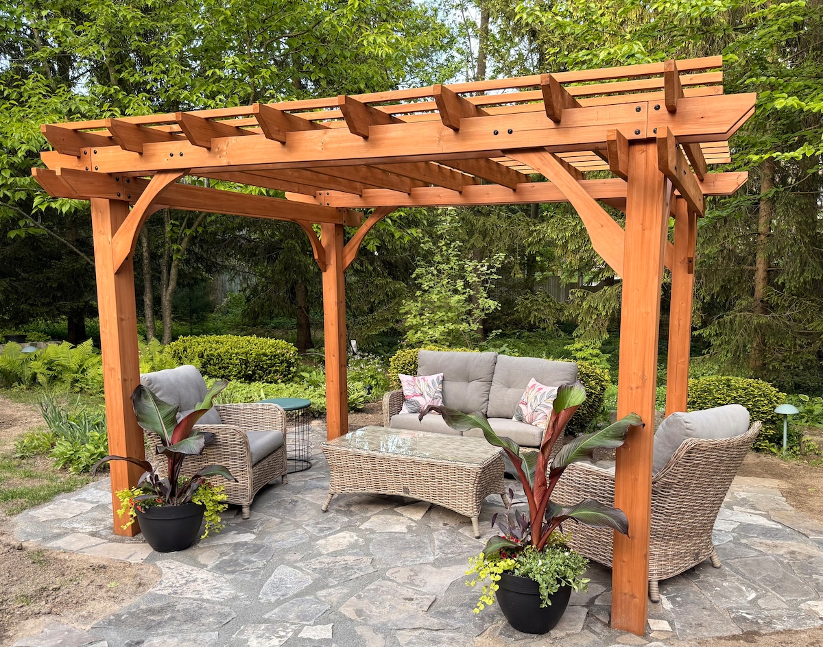 북적거리는 지역에서 벗어나 휴식을 취할 수 있는 달콤한 북유럽 스파에 오신 것을 환영합니다! 연중 내내 아름답게 관리되는 2베드룸 A자형 전원주택으로 사우나, 배럴 온수 욕조, 냉탕이 있습니다. 온타리오 램턴 쇼어스/그랜드 벤드 여행을 위해 평화로운 전원주택에서 편안한 숙박을 즐기세요. 숙소에는 에어컨, 가스 벽난로, 와이파이, 완비된 주방, 작업 공간, 라운지 파티오가 갖춰져 있습니다. 저희 전원주택은 그랜드 벤드 해변에서 15분 거리에 있으며, 더 피너리까지 10분 미만 거리에 있습니다. 꼭 뵐 수 있기를 바랍니다!