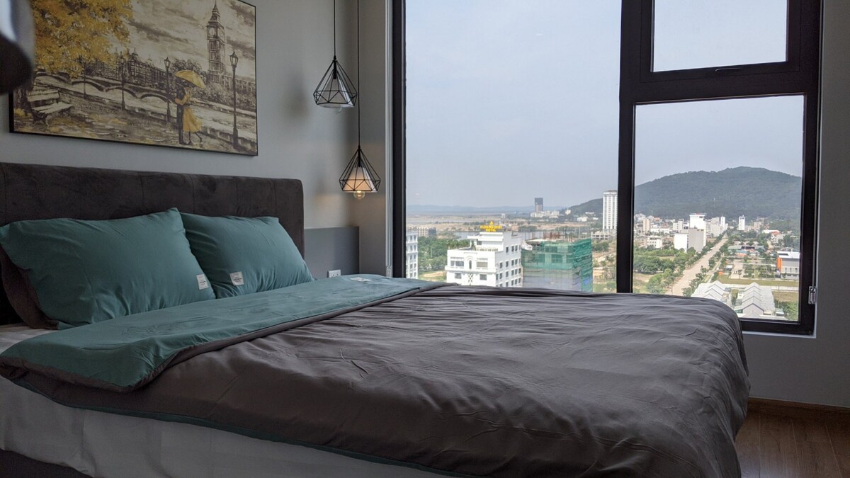 Luxury apartment à la carte Ha Long - the highest 41 floor building in Ha Long, the apartment on the 32nd floor has 2 bedrooms and a living room with glass ocean views, at the foot of the building is a white sand beach, 5-stars standard room facilities are fragrant and clean, suitable for families with young children or groups of friends who want to have a common space when traveling but still need a private, closed bedroom, especially when traveling. Watch the sea 24/24 even lying on your bed