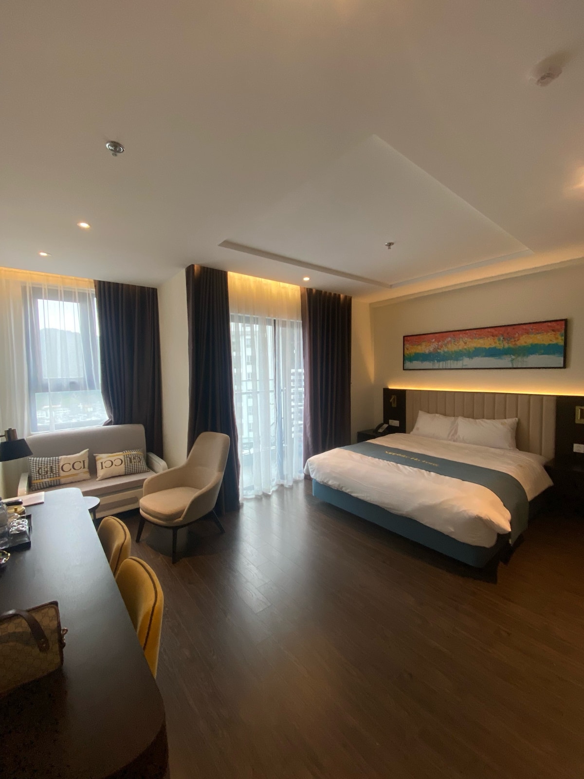 Located next to InterContinental Halong Bay Resort, this 45 SQM fully furnished Studio with breathtaking seaview of Ha Long Bay from the high floor. It's very convenient with full services for relaxing & entertainment & food at exclusive rate for guests staying here and perfectly on the beautiful beach. 🏊♂️Please note that room rate does not include pool, jacuzzi, gym, spa & breakfast which are managed by the 5* à la carte hotel. You can buy tickets at the reception at the resident rate.
