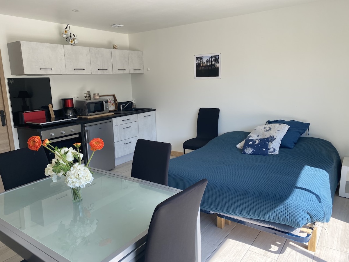Studio équipé situé face à la forêt et à 7km de la plage. Quartier calme à 2km du centre de village. location juillet-août uniquement du dimanche au dimanche