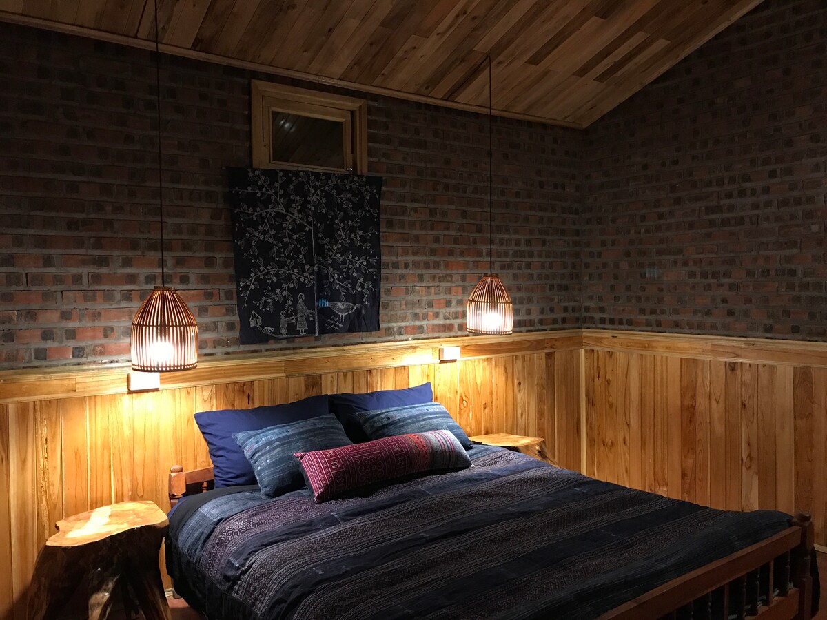 Experience the true spirit of Sapa, just 10km from the town center — peaceful and surrounded by mountains. * Separate wooden chalet for up to 3 guests * Large glass windows with mountain & rice terrace views * Fully equipped kitchen (fridge & cooking utensils) * Fireplace, heater & heated mattress (cozy in winter) * Spacious modern bathroom with hot water & heating * Outdoor garden with panoramic views
