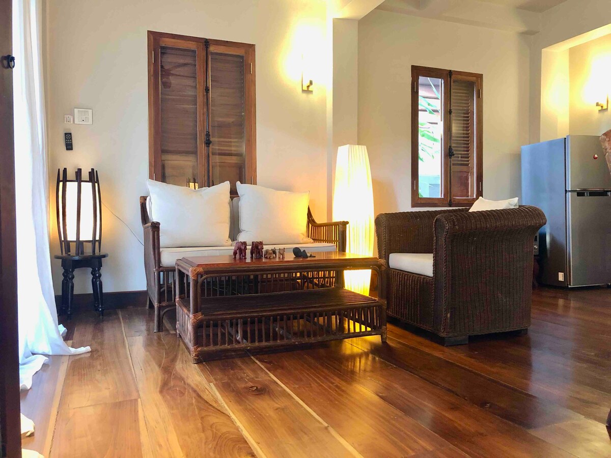 완전히 개조된 페닌슐라 하우스의 1층을 차지하는 70평방미터의 숙소입니다. 전용 출입구. 야외 테라스에는 편안한 좌석이 마련되어 있으며 작은 정원이 내려다보입니다. 작은 미국식 주방이 있는 쾌적한 거실. 침실에는 편안한 킹사이즈 침대와 창문이 많고, 창문과 레인 샤워기가 있는 좋은 욕실이 있습니다. 우리는 루앙프라방 구시가지의 최고의 위치에 있으며, 반도의 끝에 있으며, 메콩강에서 불과 100m 거리에 있습니다. 화려한 왓 셩롱통이 바로 옆에 있습니다.