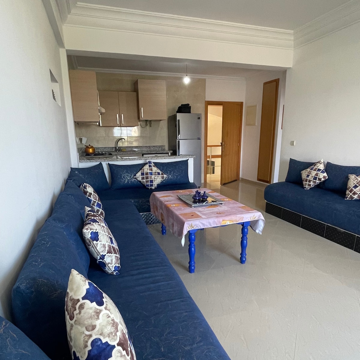 Dar Mehdi is a peaceful apartment located in Assilah Marina Golf, surrounded by nature and leisure spaces. The residence offers access to swimming pools, large green areas, a lake, and beautiful views of the sea and golf course. Guests can enjoy nearby tennis, basketball, and football fields, making it ideal for families, friends and sports and nature lovers. A calm and secure setting, perfect for relaxation and unforgettable stays.