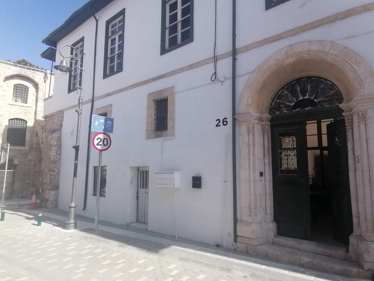 Private, renovated guestroom studio with small garden, part of a 1950s stone-build house in a prestigious Larnaca area. Seven minute walk to the ancient St Lazarous church and town center, ten minute walk to the famous Phinikoudes beach, five minute walk to the untouched old Turkish neighborhoods. Close to all amenities (mini-markets, kiosks, car rentals, petrol stations). The guesthouse has its own little kitchen, private bathroom with walk in shower, and a private garden.