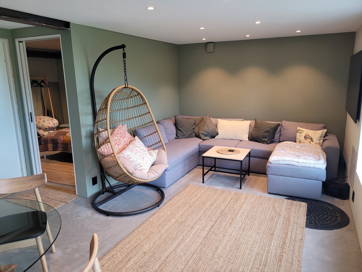 간이 주방이 있는 밝고 쾌적한 1베드룸 아파트. 더블 침대와 소파 베드가 포함되어 있습니다. 주방에는 냉장고/냉동고, 호브, 오븐, 전자레인지, 식기 세척기가 있습니다. 난방 바닥 난방 시설이 있는 크고 밝은 타일 욕실 변기, 세면대, 샤워 코너가 포함되어 있습니다. 이 아파트는 1층 차고에 있습니다. 오후에 햇살이 내리쬐는 전용 테라스. 에서 찾을 수 있는 바베큐 오두막도 대여할 수 있습니다. 숙소. 대여할 수 있는 자전거가 2대 있습니다 (하루 5유로). 주차가 용이합니다.
