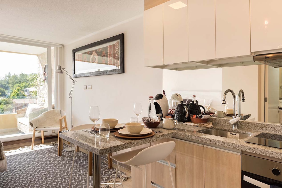 편안하고 현대적이며 아늑한 침실 1개, 간이 주방, 24시간 컨시어지, 주차장, 에어컨, 세탁기, TV 2개, 와이파이 인터넷, 더블 침대가 있는 침실, 거실에는 1인용 소파 베드가 있습니다. 어린이를 둔 커플에게 적합합니다(1층에 위치). 성인 2명과 어린이 2명 또는 성인 3명이 사용할 수 있으며, 파티오와 주방으로 바로 연결됩니다. 푸콘 시내 중심지 위치 참조 (차로 5분). 17세 미만 어린이 추가 요금 없음.