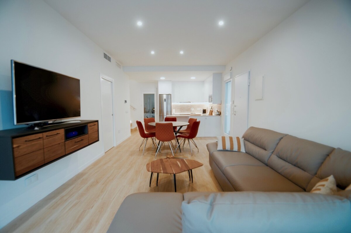 해변에서 900미터 거리에 있는 무르시아 지역의 산하비에르에서 8인용 럭셔리 펜트하우스를 즐겨보세요. 전용 옥상 수영장, 우아한 침실 3개, 시설이 완비된 주방, 아늑한 거실, 에어컨, 초고속 와이파이를 갖추고 있습니다. 일 년 중 어느 때나 완벽한 숙소입니다. 지금 예약하고 잊지 못할 숙박을 경험하세요!