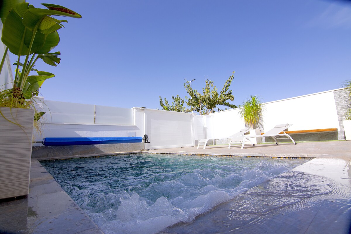 바다 근처에 있는 전용 온수 수영장이 있는 고급 6인용 휴가 빌라. 코스타 칼리다(스페인)에서 잊지 못할 휴가를 보내는 데 필요한 모든 것. 더블 침대가 있는 세련된 침실 3개. 럭셔리 욕실 2개. 스파와 역류 시스템이 있는 온수 전용 수영장(9미터). 해변, 산책로, 아늑한 바와 레스토랑까지 도보 및 자전거로 이동할 수 있는 거리에 있습니다.