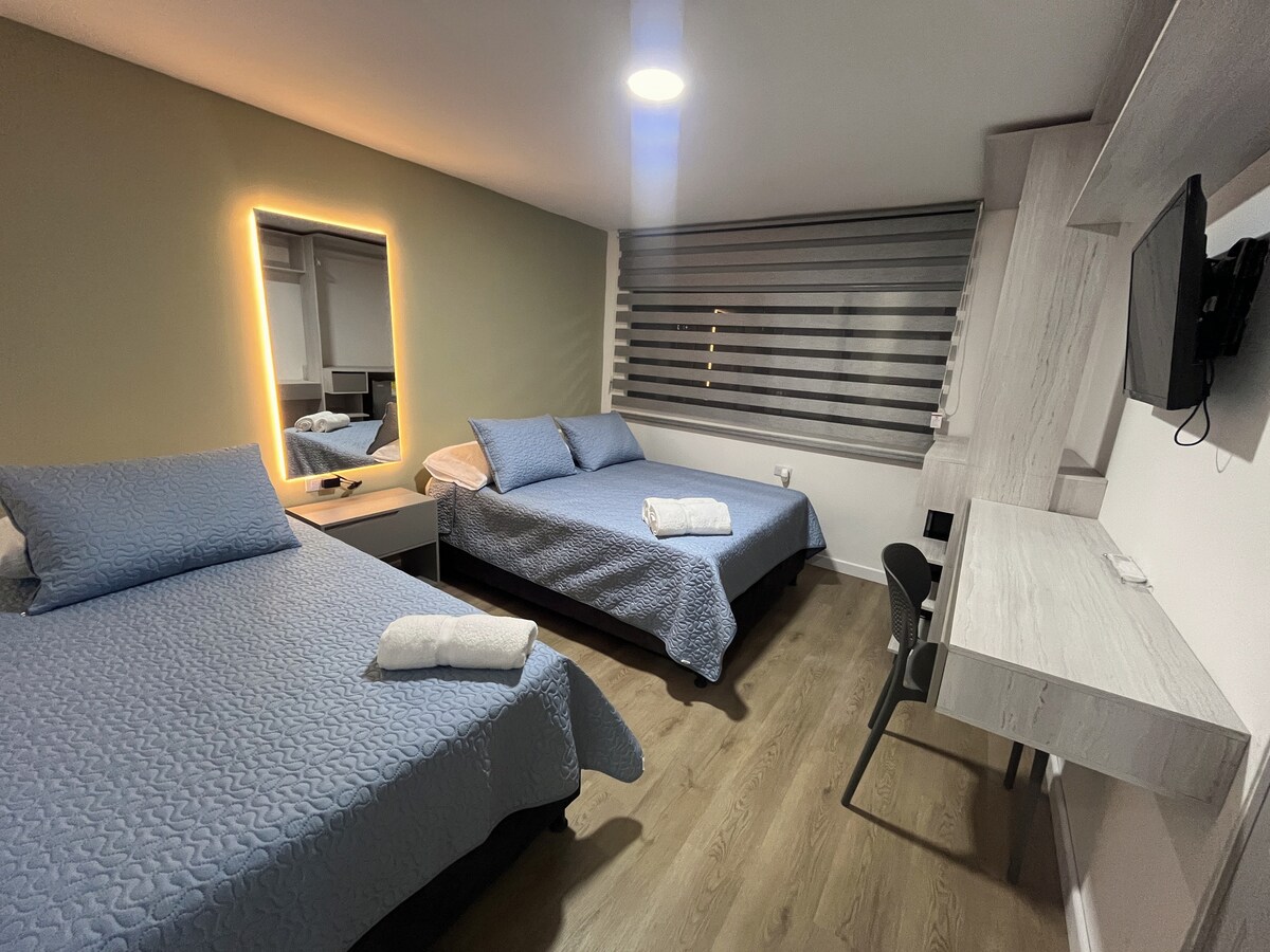 Disfruta de este lindo y tranquilo alojamiento que tiene excelente ubicación, se encuentra en un piso 5, es acogedor y cómodo, cuenta con todo lo que necesitas para estancias cortas o largas, tiene estacionamiento gratis en el sótano, entra mucha ventilación y luz, 2 aires acondicionados, edificio nuevo con zonas comunes y ascensor, el barrio es super tranquilo y hay un centro comercial, restaurantes y supermercados muy cerca. Ideal para recuperaciones por intervenciones médicas.