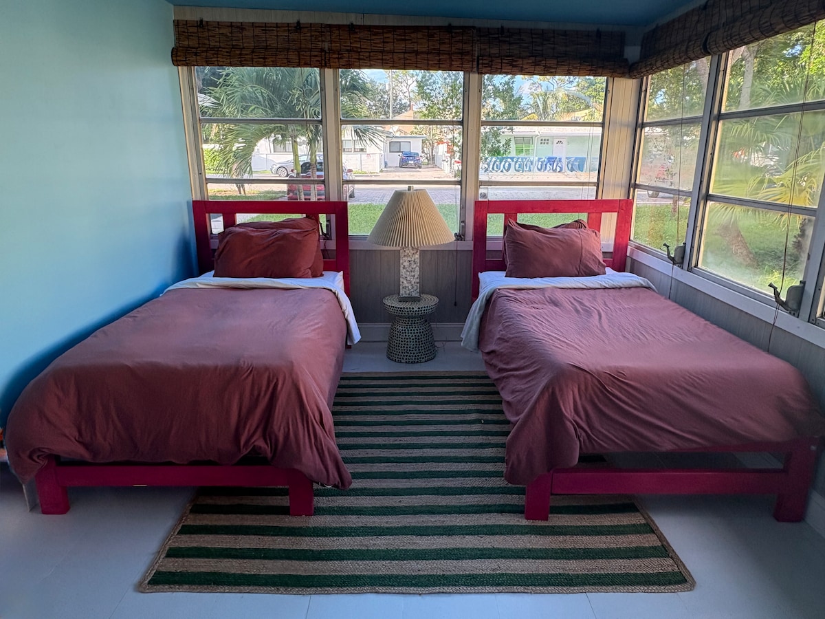 저희 행복한 숙소에 오신 것을 환영합니다! 이 단독 주택은 공원, 자연, 근처 강으로 둘러싸인 아름답고 평화로운 동네에 있습니다. 무료 주차, 초고속 와이파이, 스마트 4K TV, 넓은 마당, 화덕, 야외 식사 공간, 시설이 완비된 주방, 최대 4명의 게스트를 위한 편안함을 즐기세요. 숙소는 현지 액티비티, 레스토랑, 윌튼 매너스, 다운타운/라스올라스, 포트로더데일 해변에서 차로 5~10분 거리에 있습니다.