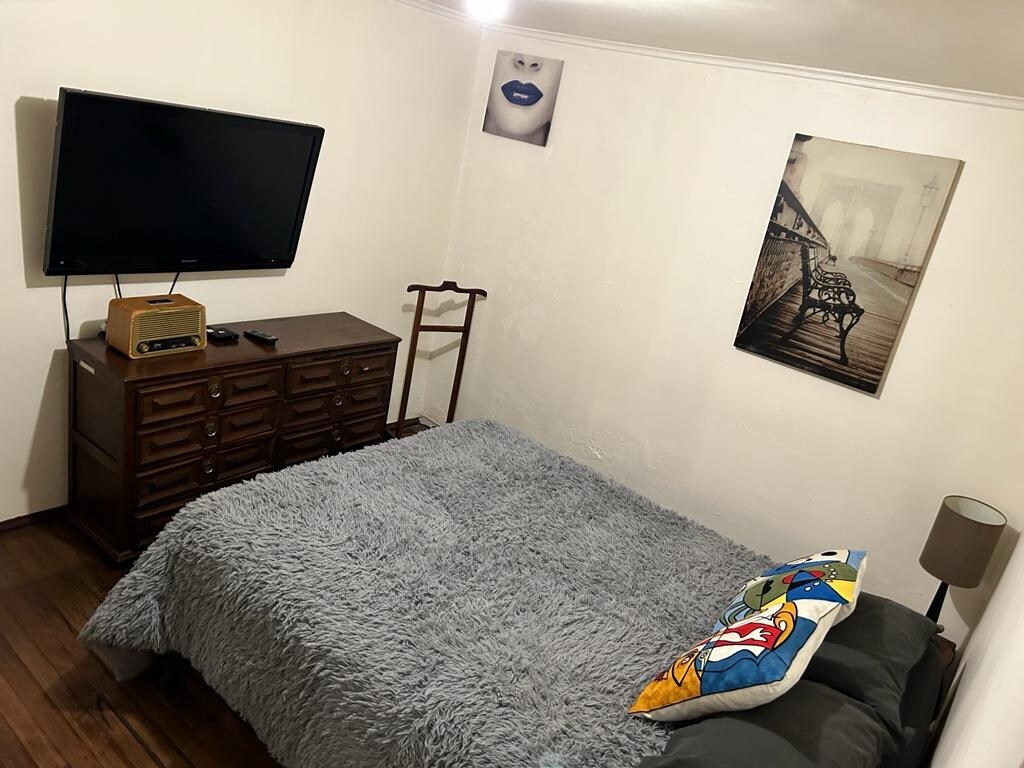 Disfruta este céntrico depto de 1 dormitorio + sofá cama ¡a un paso de todo!: calles principales, transporte (buses y metro), lugares turísticos, barrios bohemios (Lastarria, Barrio Italia), hospitales, plazas y parques. Ideal para estadías sin preocupaciones: tendrás todo lo necesario para que te sientas como en casa. Su vista al sur la hace fresca en verano aun sin aire acondicionado y ¡sin ruido exterior! las ventanas termopanel permiten descansar plácidamente. ¡Incluye un desayuno básico!