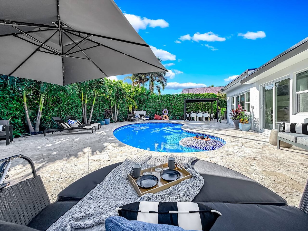 This luxury 4-bedroom family friendly home is jam-packed with amenities & has everything you need for an amazing vacation or extended stay in Fort Lauderdale, FL! • Just 1 mile from Lauderdale by the Sea • 19-minute drive to Las Olas • Family Friendly- Pack n Play & High Chair • Heated Private Pool ($100/night) • Outdoor Bar & Patio • Pool Table • BBQ Grill • Beach Essentials: Chairs, Boogie Boards, Umbrella & more! • 2 Bikes Included • Fully Stocked Kitchen • TVs in Each Bedroom • High Sp
