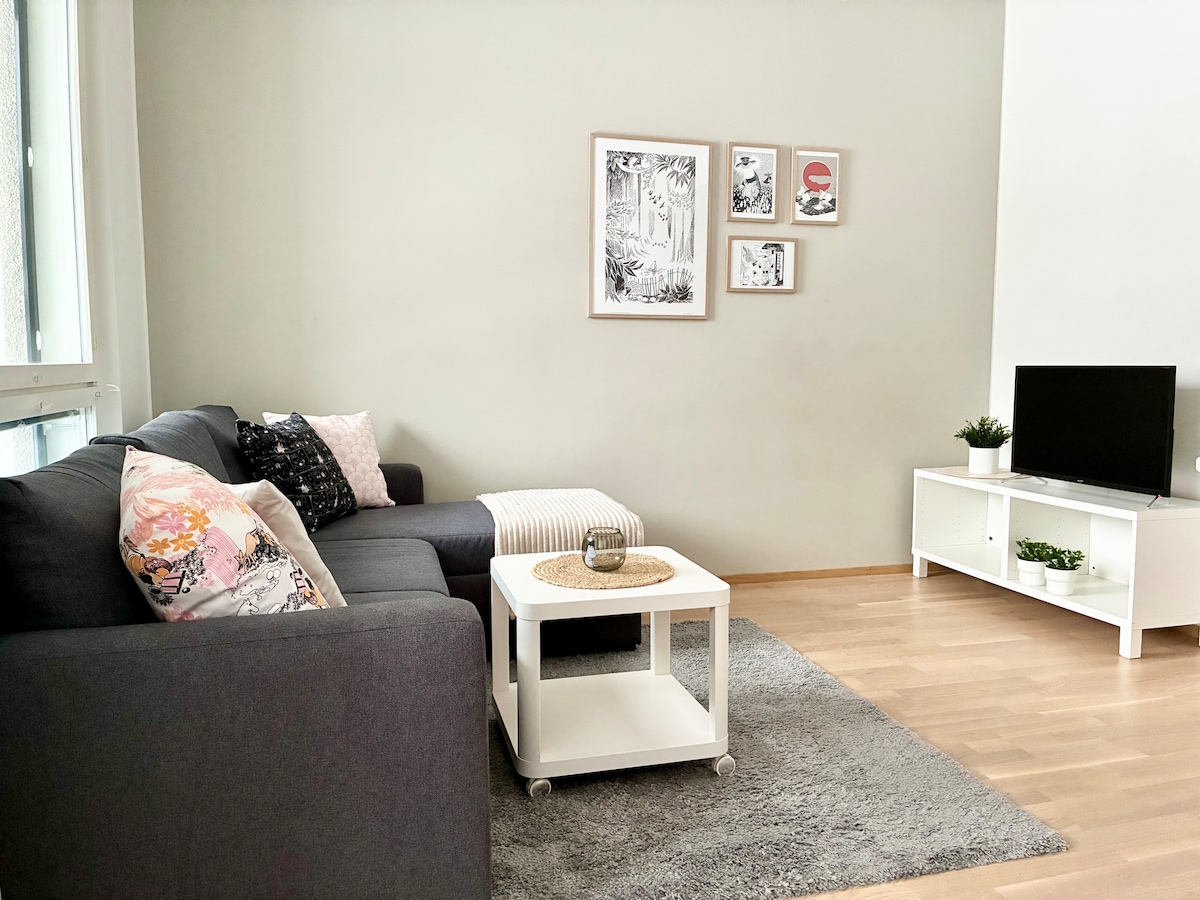리모델링된 34m2 아파트☘️ 무료 주차☘️ - 열쇠 보관함으로 셀프 체크인🔑 - 주택 단지의 마당과 도로변에 무료 주차 가능 🅿️ - 조리할 수 있는 시설이 잘 갖춰진 주방: 커피메이커, 전자레인지, 커피, 차☕️ - 식기세척기🍴 - 55인치 TV📺 - 160cm 침대 + 소파에 숙박 가능, 3명 숙박 가능 - 스키 슬로프까지 300m, 스키 센터까지 6km⛷️ - 버스 정류장 150m 🚌 - S-마켓 300m 및 대형 쇼핑몰 1km - 4개의 도로에 위치 - 2024년 리모델링 완료