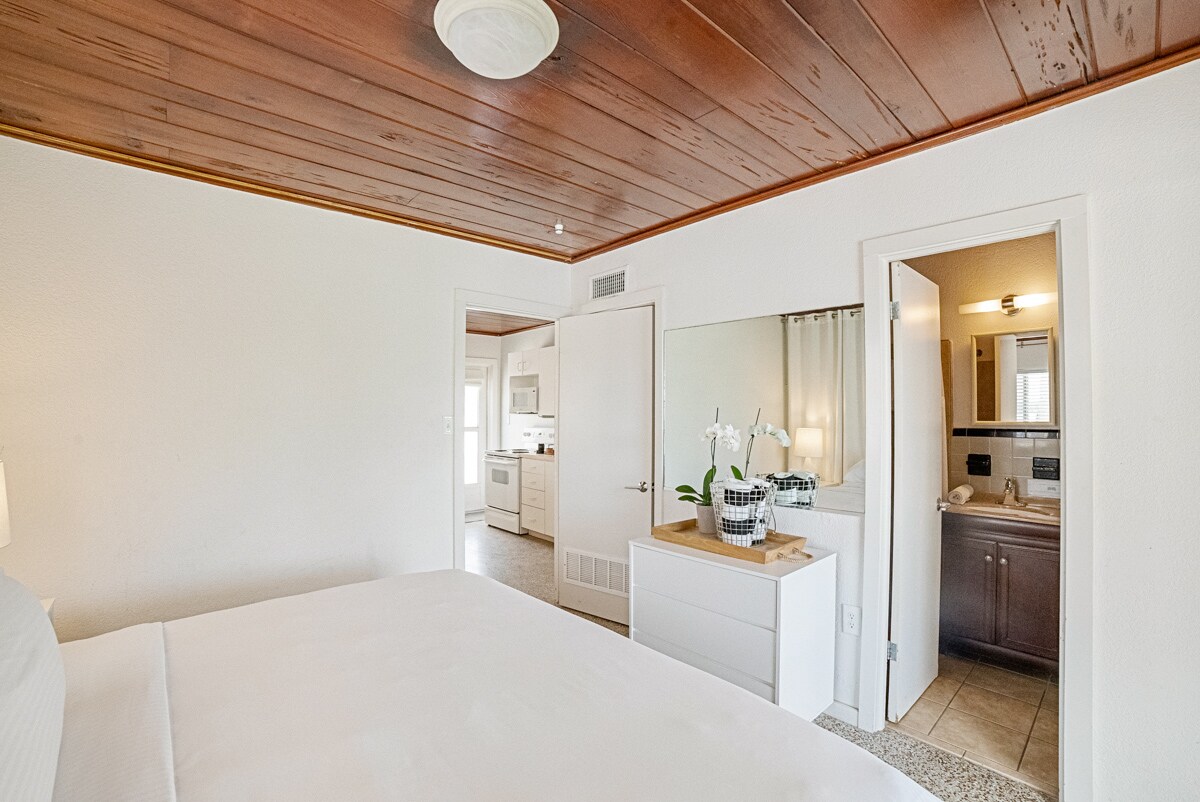 팜 트리 빌라는 작은 스튜디오부터 세 개의 욕실이 있는 침실 3개 빌라에 이르기까지 1950년대의 독특한 리조트 객실 8개를 제공합니다. 멋진 독특한 섬 휴가를 위해 당신을 호스팅하고 싶습니다. 트롤리 라인에서 편리하게 가깝고 주변에 훌륭한 식사 장소가 많으며 해변까지 도보로 이동할 수 있을 만큼 가깝습니다. 이 숙소는 식사 공간과 거실이 완비된 매우 인기 있는 2베드룸 콘도이며 바비큐 그릴이 있는 전용 뒷마당 파티오가 있습니다.