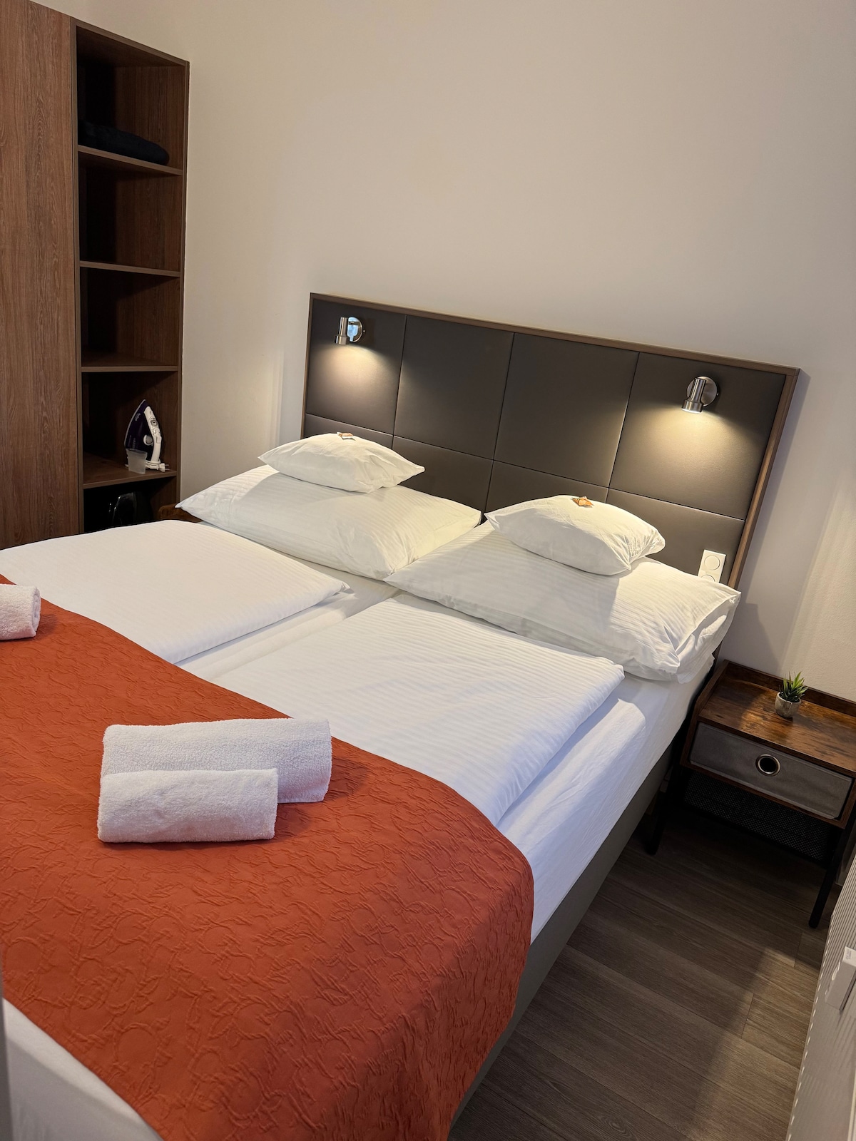 사허 펜션 - 아파트 스테판 플라츠에 위치한 세 개의 아늑한 대형 2 룸 아파트는 각각 개인적인 특징을 가지고 있습니다. 특정 아파트를 약속할 수는 없습니다. 모든 아파트에서 슈테판 대성당의 멋진 전망을 감상할 수 있습니다. 이 아파트는 58 평방 미터에서 60 평방 미터 크기이며, 완비된 주방, 욕실, 위성 TV, 휴대 전화 및 에어컨이 있는 로비를 갖추고 있습니다. 청소는 매일 주중에 아침에 이루어지며 이는 요금에 포함되어 있습니다.