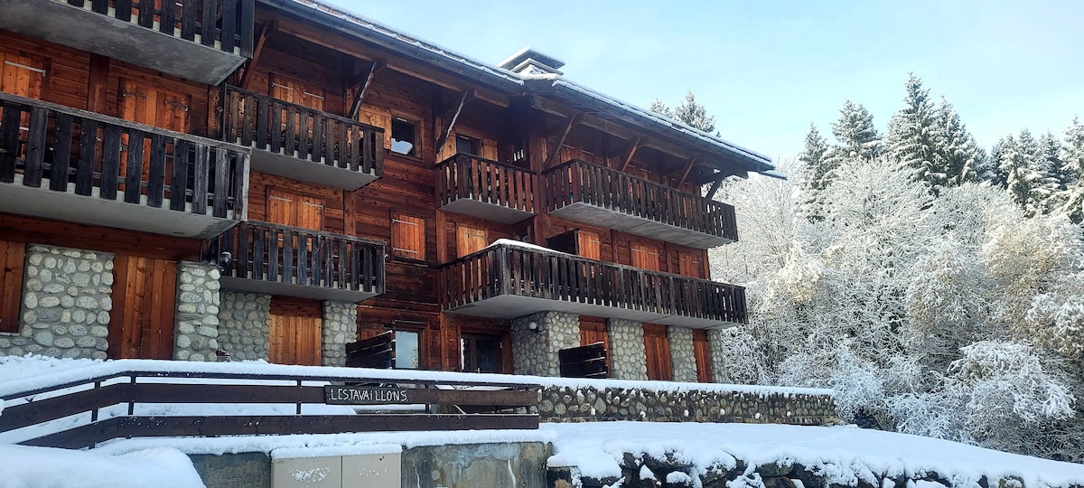 이 아파트는 시크한 산악 스타일로 완전히 리모델링되었습니다. 식기 세척기, 세탁기, 인덕션 쿠킹 탑, 고급 소파 베드, 어린이/청소년을 위한 2층 침대가 있는 목조 오두막 등 다양한 시설이 갖춰져 있습니다. 기억에 남는 일몰과 함께 몽블랑 산맥의 숨막히는 전망을 감상할 수 있는 작은 테라스. 아파트 바로 앞에서 스키를 신고 벗을 수 있습니다. 전용 주차 공간이 있는 실내 주차장을 이용하실 수 있습니다.