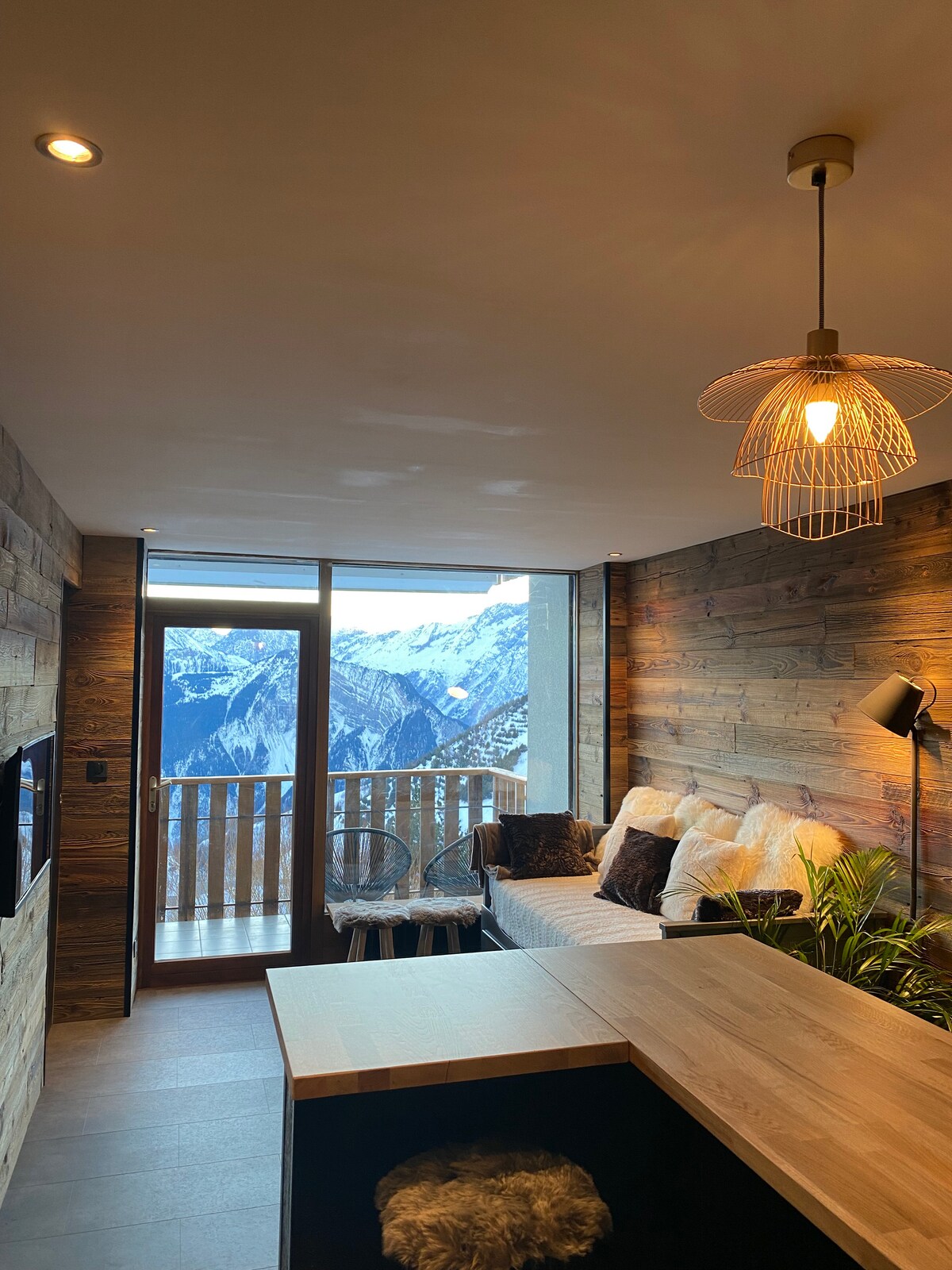 Appartement de 33m² au pied des pistes fraichement rénové, dans résidence Pierre et Vacances 4 étoiles avec piscine chauffée et sauna. L'appartement a tous les équipements : TV 102 cm, frigo, lave-vaisselle, plaque électrique double, micro-ondes combiné grill, cafetière nespresso et machine à raclette/fondue. Salle de bain baignoire, sèche-serviettes soufflant et sèche-cheveux. Les wc sont séparés. Nombreux rangements. 1 balcon et un casier à ski.