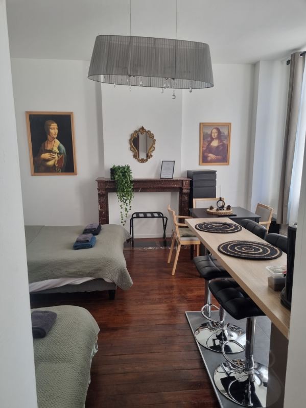 - Appartement calme moderne et design situé à 2minutes du centre-ville et des commerces, 10minutes à pied de la gare de Cambrai. - Entièrement rénové tout confort avec Wi-Fi. - Cuisine ouverte toute équipée avec frigo américain, lave-vaisselle - Salle de bain avec douche et baignoire. - Une chambre équipée d’un lit King Size, armoire et TV - Une buanderie avec un lave-linge - Un WC - Un canapé convertible - La literie, serviettes et gants de toilette sont fournis ! - Une cafteriere Senseo