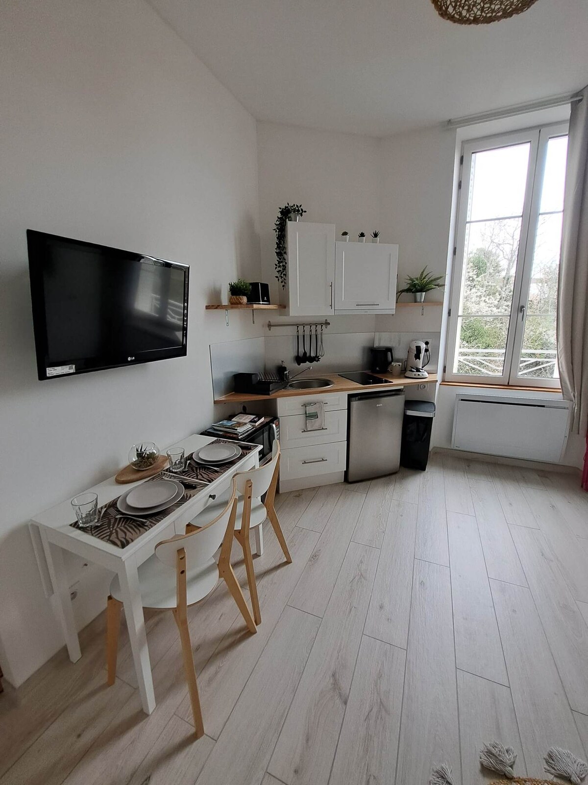 Studio situé au Grand Hotel avec ascenseur à 50 mètres du Aïga resort thermes. Studio spacieux. -canapé lit en 80x200cm convertible en 160x200cm. -cuisine équipé, bouilloire, micro-onde grill, frigo, café senséo, grille pain. - salle de bain douche, machine à laver, sèche serviette. Veuillez me contacter par message pour voir les dates de disponibilités.