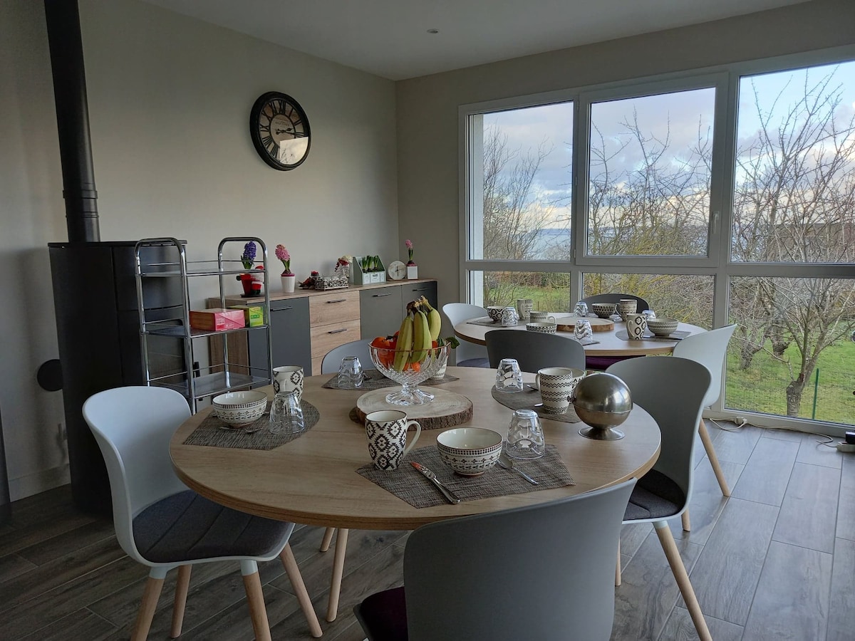 각 객실은 완벽한 장비와 시골과 노르망디 다리의 탁월한 전망을 제공합니다. 아기 침대를 사용할 수 없습니다. 꼭 부탁드립니다. 가격에는 세금과 조식이 포함됩니다. 26°C의 온수 수영장을 즐기고 휴식을 취하세요! 오래된 수영장에서 몇 분 거리에 위치한 이 숙소는 현대성과 진정성이 어우러져 있습니다. 건축물, 위치, 주차장이 있어 기분을 좋게 할 수 있는 독특한 장소입니다.