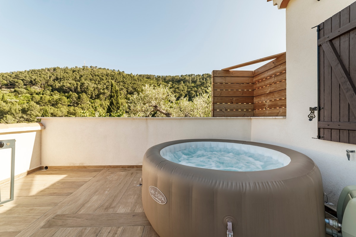 - 온수 욕조가 있는 숙소 르 라반두