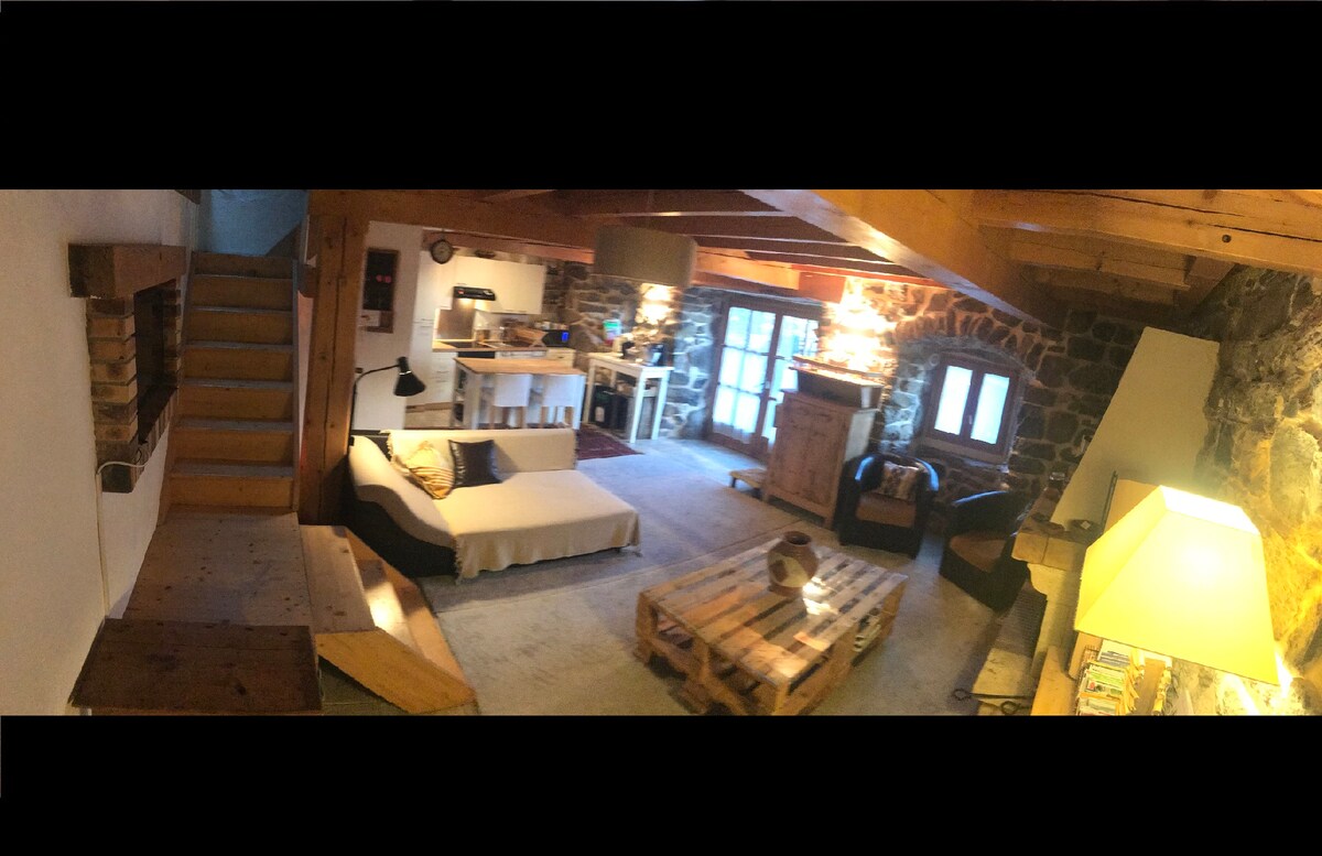 Besoin de déconnecter dans la nature, de confort douillet au coin du feu ? Cette ancienne petite chaumière en pierre et bois, rustique et cosy est faite pour vous ! Le bain nordique jacuzzi privatif et le sauna panoramique est à votre disposition tout au long de votre séjour. Avec sa cheminée, sa terrasse de lauzes, son calme : l'endroit idéal pour faire une vraie pause été comme hiver. Cocooning en amoureux, activités nature en forêt et sur les plateaux auvergnats ! Time to relax !