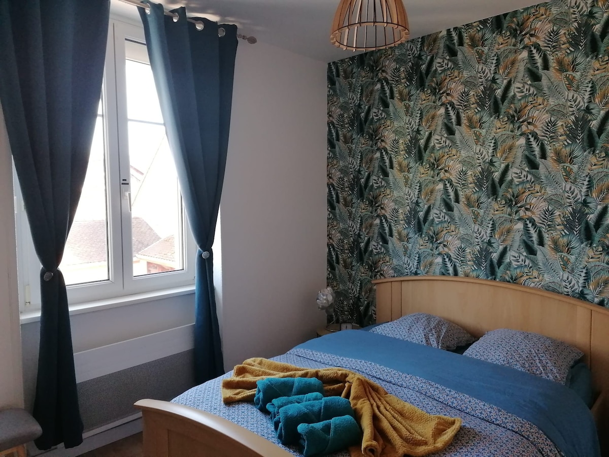 지붕 아래, 넓고 밝고 조용하며 독립적인 공간, 개성 있는 집 2층에 위치. 두 개의 큰 벨뤼스 창문을 통해 보주산맥의 멋진 전망을 감상할 수 있습니다. 임대 숙소에는 메인 룸, 더블 침대가 있는 침실, 욕실, 작은 주방, 다다미 위에 매트리스 2개가 놓인 중이층이 포함됩니다. 복원은 친환경 소재로... 그리고 많은 관심과 사랑으로 이루어졌습니다! 원하는 대로 정원을 이용하실 수 있습니다!