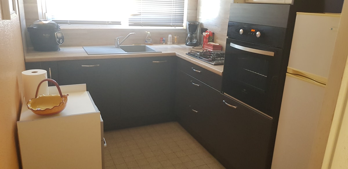 maison mitoyenne située au rez-de-chaussée cuisine salle a manger avec canapé lit salle de bain avec une baignoire et wc 2 chambres : chambre 1 lit 160 Chambres 2 lit 140 et fauteuil qui se transforme en lit 1 place