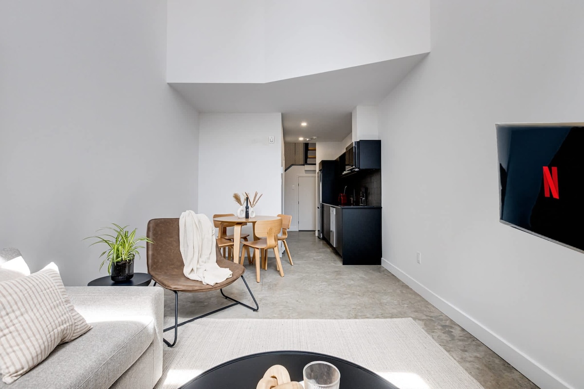 럭셔리 로프트 | 킹사이즈 침대 및 프로젝터 + 무료 주차