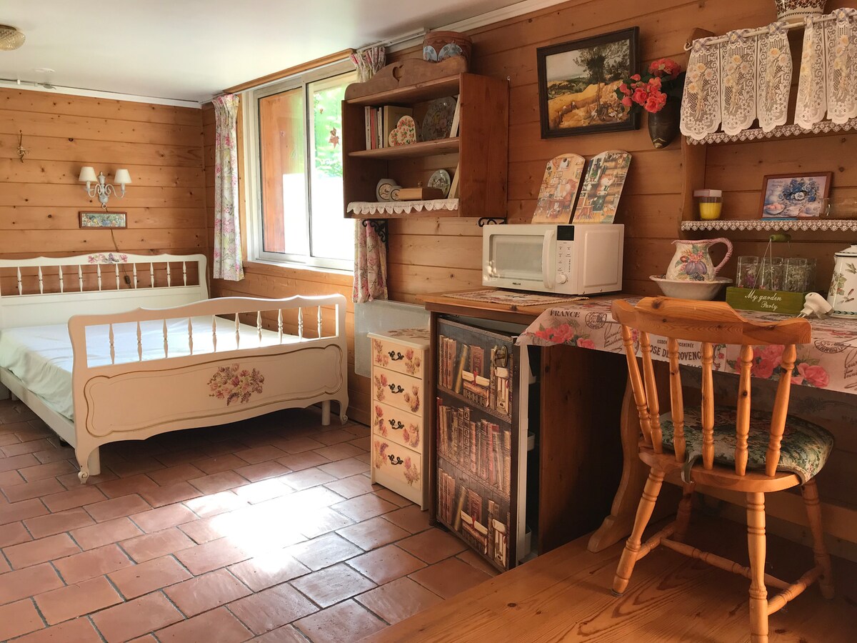 38m² 숙소 및 정원, 주차장. 와이파이 침구 제공, 침대 정돈, 커피, 차 및 기본 제품. 커플에게 이상적입니다. 게이트는 주인의 집에서 완전히 독립적입니다. 목재와 석재로 지어진 노르망디 스타일의 주택. 옹플뢰르 중심지에서 4.5km, 도빌에서 15km 떨어진 고지대의 마을에 위치(고속도로 1km) 차량 전용 진입로와 게이트가 있는 전용 출입구. 정원에는 테이블과 의자, 의자 및 파라솔이 마련되어 있습니다. 빵(슈퍼마켓) 300m.